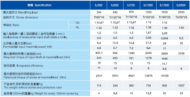 2.Speed of Jacks: the moving length of the screw or screw nut per minute or per second.